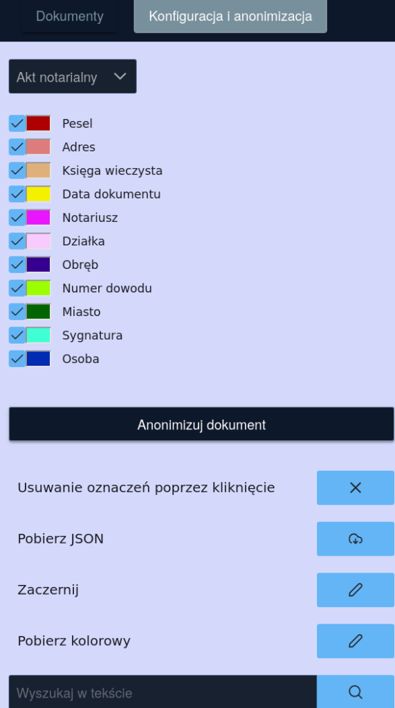 - do automatycznej anonimizacji dokumentów urzędowych, takich jak akty administracyjne, pisma, skargi czy umowy.